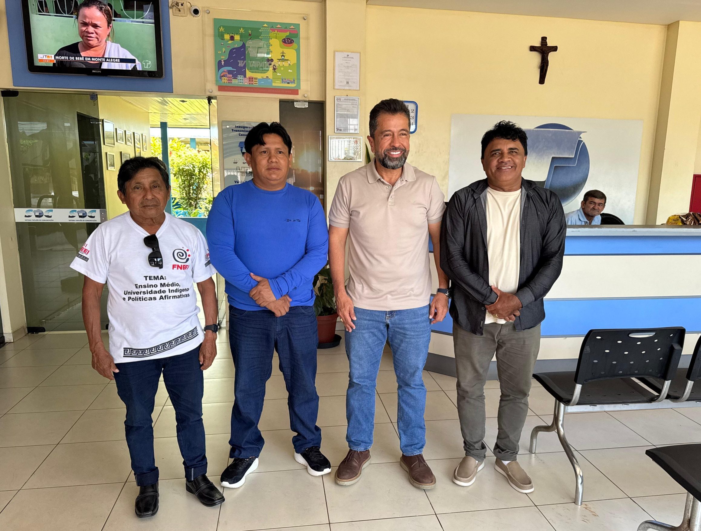 Nesta quarta-feira (25/03), na cidade de Santarém (PA), o deputado federal Henderson Pinto recebeu, em audiência, o prefeito de Jacareacanga, Valdo do Posto, acompanhado da liderança indígena Giovani Kaba e do cacique Arnaldo Munduruku.