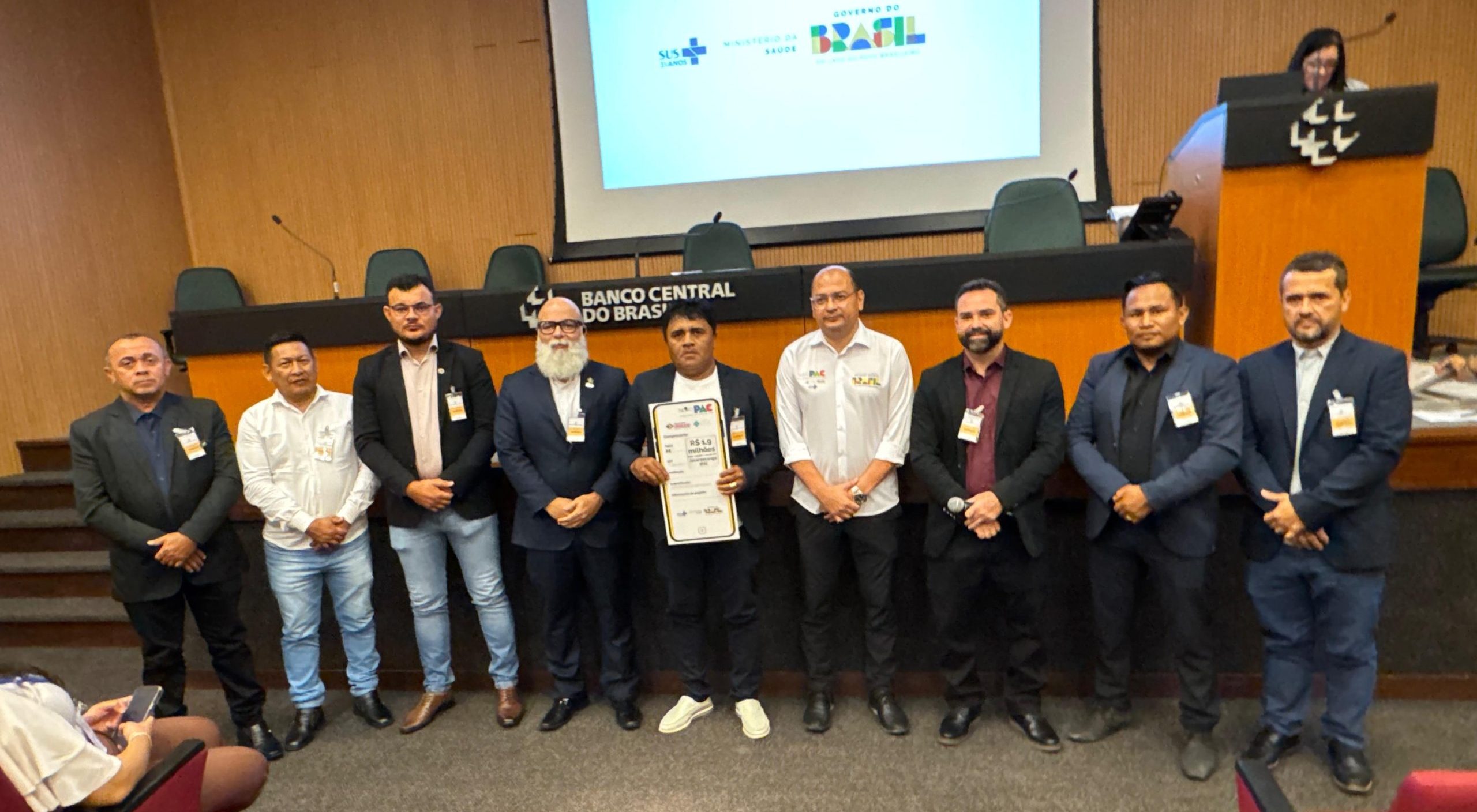 A solenidade contou ainda com a presença de Delcimar de Souza Viana, superintendente do Ministério da Saúde no Pará (SEMS/PA), além de representantes de diversos municípios paraenses que abrilhantaram o evento. Representando Jacareacanga, o prefeito Valdo do Posto esteve acompanhado dos vereadores Zenildo Saw, Silvinho Stedile (Silvinho do paco paco), Lenilson Paigo, Marivaldo Ribeiro e Manoel Júnior Ribeiro, reforçando o compromisso conjunto entre os poderes Executivo e Legislativo na busca por investimentos e avanços para o município.